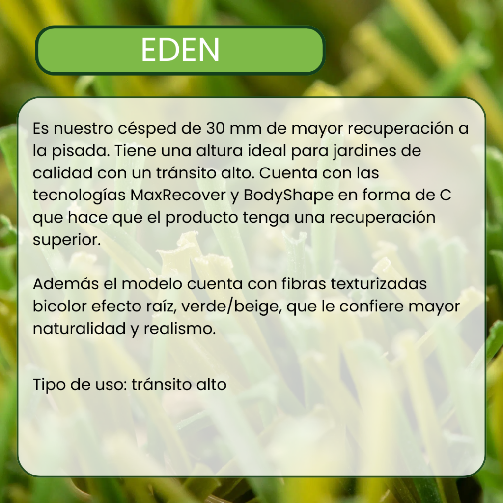 Fabricado con materiales no tóxicos y resistentes, el césped Edén es seguro para el juego, antialérgico y libre de barro o charcos.