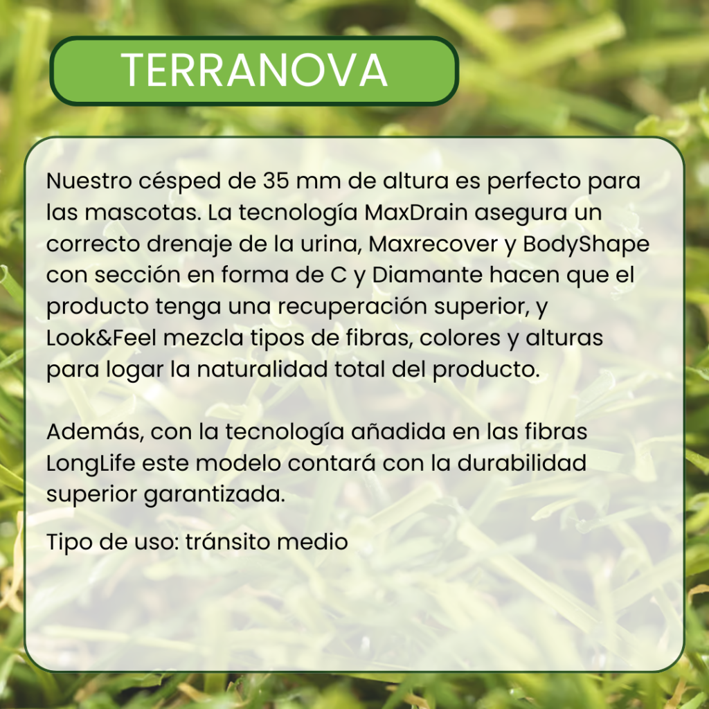 Césped Artificial Terranova Muy natural y resistente, con apariencia realista. 🌾 « ‹ of 3 › » PROPIEDADES Y FUNCIONALIDAD Tecnologías con las que cuenta el césped artificial terranova MÁS INFORMACIÓN USO RECOMENDADO ASÍ DE FÁCIL ES PEDIR TU PRESUPUESTO TU PROYECTO EMPIEZA AQUÍ ¿QUÉ ESPERAS? Please enable JavaScript in your browser to complete this form.Please enable JavaScript in your browser to complete this form.Nombre *Teléfono *Correo electrónico * Comentario o electrónico Comentario o mensajeEnviar